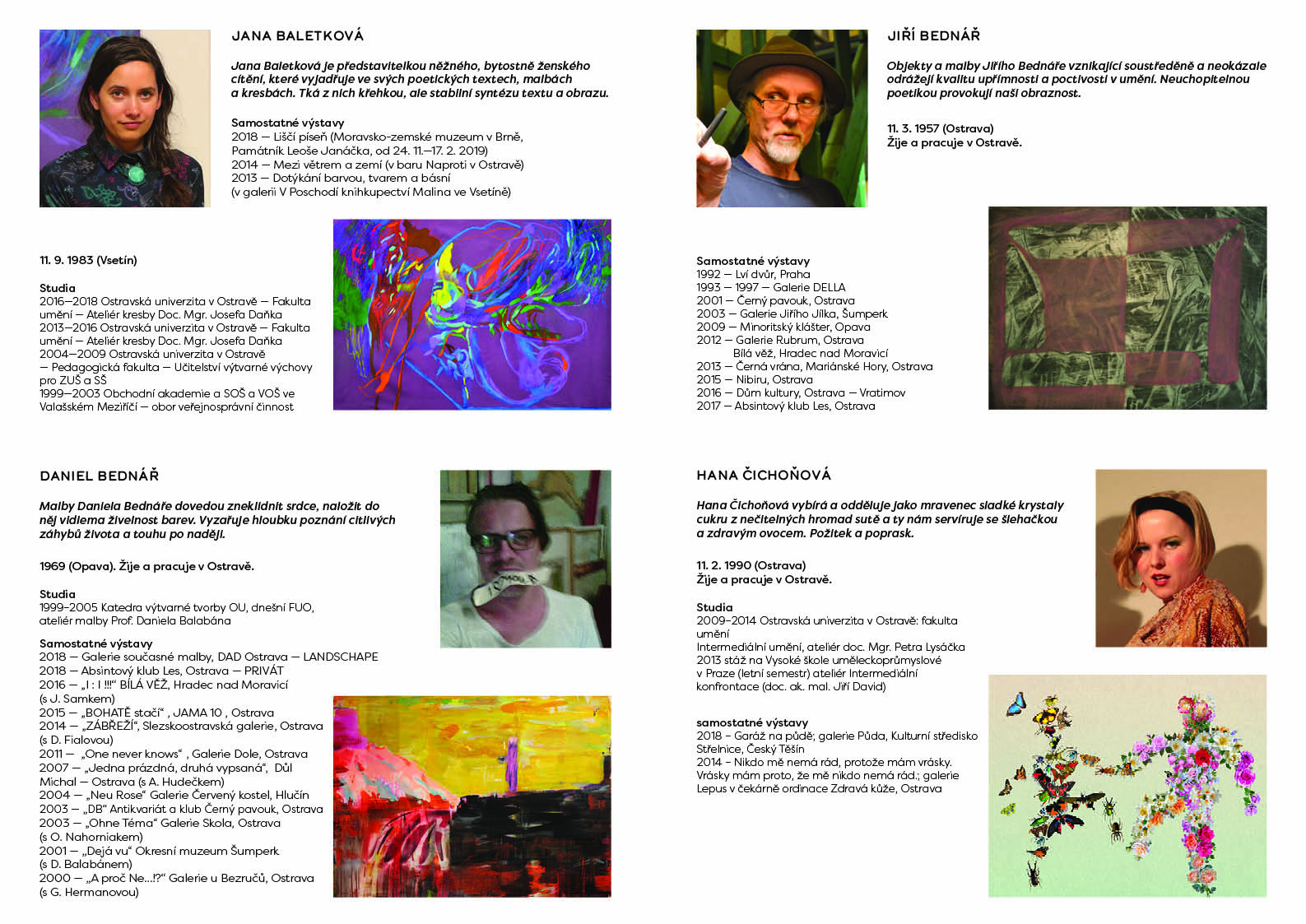 Výstava v galerii Půda v Českém Těšíně. --- Vystavující: Jana Baletková, Daniel Bednář, Jiří Bednář, Hana Čichoňová, Marek Pražák, Anna Zelinková. --- Kurátoři: Marek Pražák a Hana Čichoňová. --- Grafické zpracování plakátů a katalogu: Hana Čichoňová.